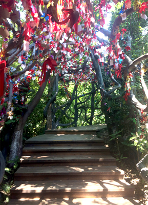 島上綠樹成蔭,山隨水轉,水繞山行我們先后游覽了“龍興酒棧”“白龍瀑”“蝴蝶谷”“聽海竹樓”等